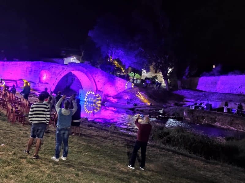 Tras la sexta Marcha Saludable en memoria de Javi Ledesma, la localidad riojalteña cerró la jornada del domingo en el Puente Romano con un concierto de la mano del dúo ‘Coupage’ y un espectáculo de luz y sonido