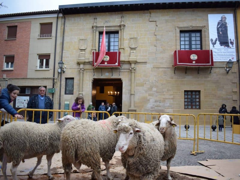 La encina lucirá durante las fiestas navideñas en uno de los balcones de la fachada principal de la Casa del Santo en Santo Domingo de la Calzada