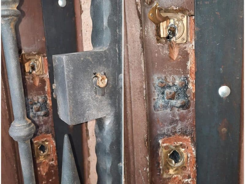 Los desperfectos han afectado a las cerraduras de la puerta de la ermita ubicada en los Riscos de Bilibio
