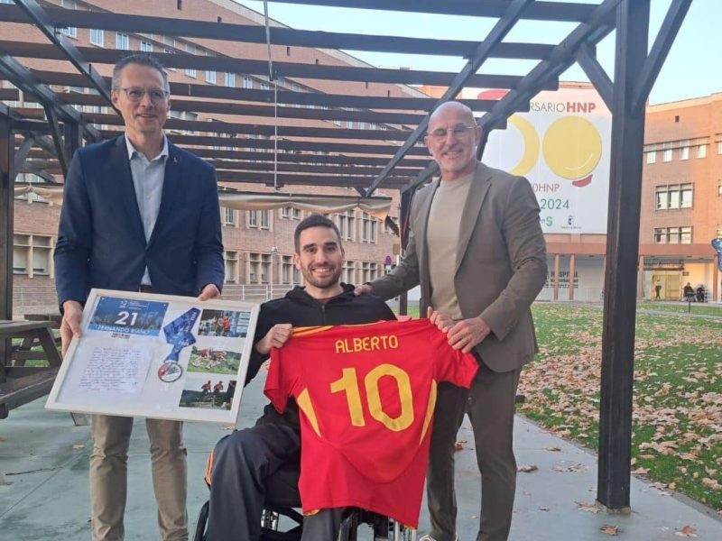 El seleccionador nacional absoluto y el campeón del mundo de triatlón han visitado a un guardia civil que se recupera en Toledo de un grave accidente