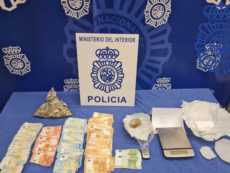 Han sido incautados por la Policía Nacional casi 10.000 euros, 300 gramos de cocaína y 84 gramos de hachís