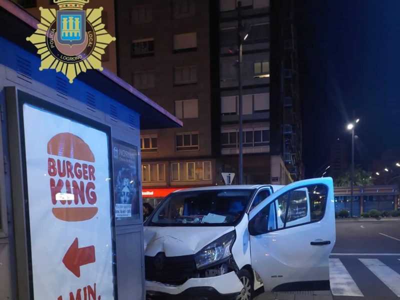 Un camión de la basura choca contra una farola en el polígono Fuente Ciega en Haro