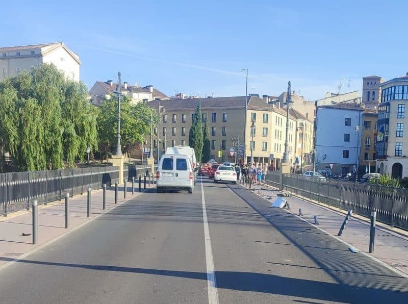 Un accidente causa daños en diez de los pivotes del Puente de Piedra en Logroño