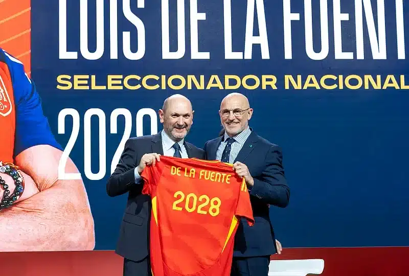 La RFEF ha presentado oficialmente este lunes, en rueda de prensa, el acuerdo de renovación con Luis de la Fuente, que seguirá al frente de la Selección Española hasta 2028