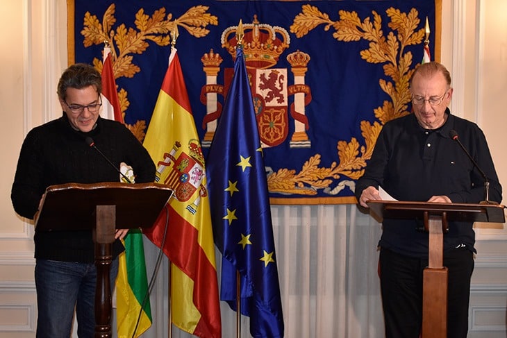 Los directores generales de Turismo, Ramiro Gil, y Cultura, Ana Zabalegui, y el productor y autor, Roberto Rivera, han presentado esta mañana una obra dirigida por José Pascual y que cuenta con Miguel Hermoso, Pedro Miguel Martínez, Pepe Ocio y Óscar Hernández en el elenco de actores