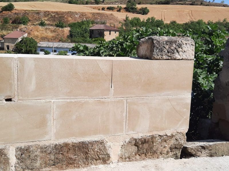 Una obra del Gobierno riojano está arreglando un muro centenario de piedra en la avenida la Constitución por bloques “de otra tipología”